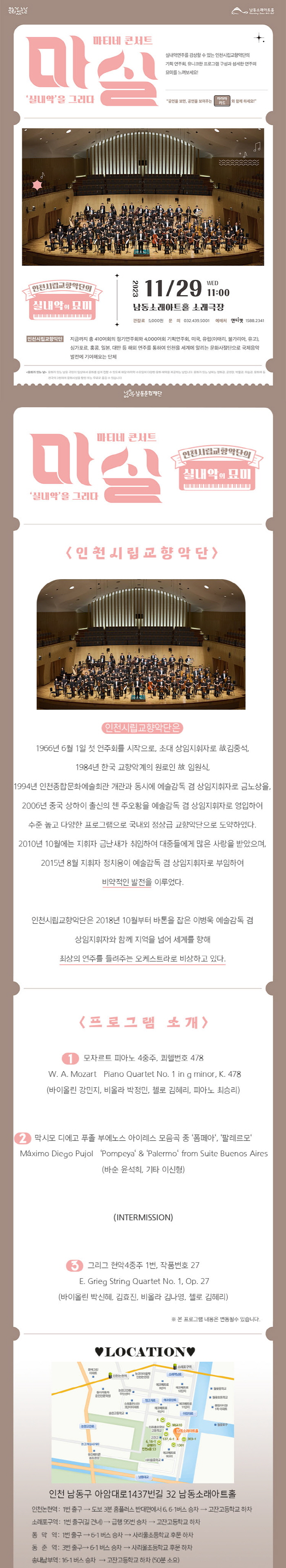 °ø¿¬Àå¼Ò : ³²µ¿¼Ò·¡¾ÆÆ®È¦ ¼Ò·¡±ØÀå  (ÀÎõ ³²µ¿±¸ ¾Æ¾Ï´ë·Î1437¹ø±æ 32 )